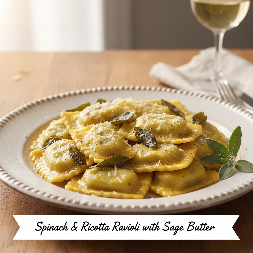 Spinach & Ricotta Ravioli with Sage Butter