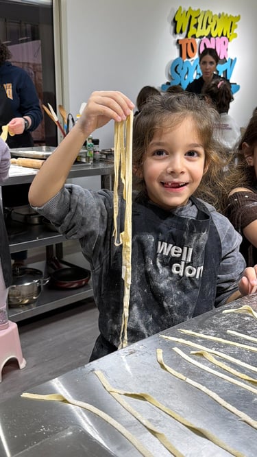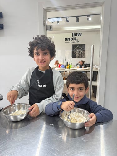 Host a fun and interactive private cooking playdate at Well Done Society! Each child gets their own station to prepare a main dish and dessert from scratch under the guidance of our professional team. Aprons are provided, and after cooking, kids dine in our indoor or outdoor terrace seating area and enjoy their creations with juice. You get full flexibility to choose the date, time, and menu for your private playdate. Parents can relax nearby with complimentary coffee and tea, with optional catering available.